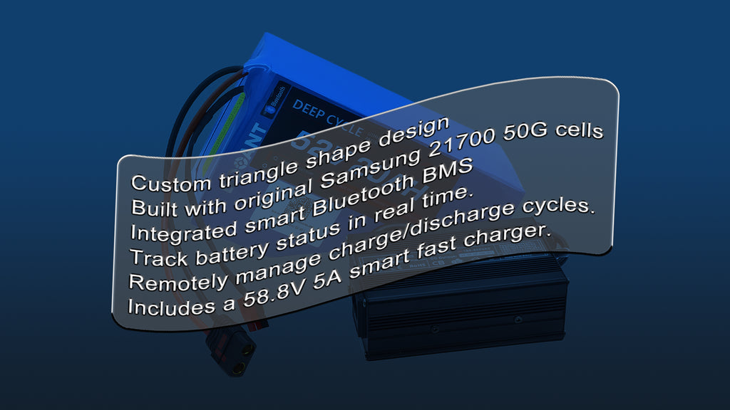 52V 20Ah Bluetooth Triangle eBike Battery | Samsung 50G Cells | APP Control & Monitoring | 5A Fast Charger