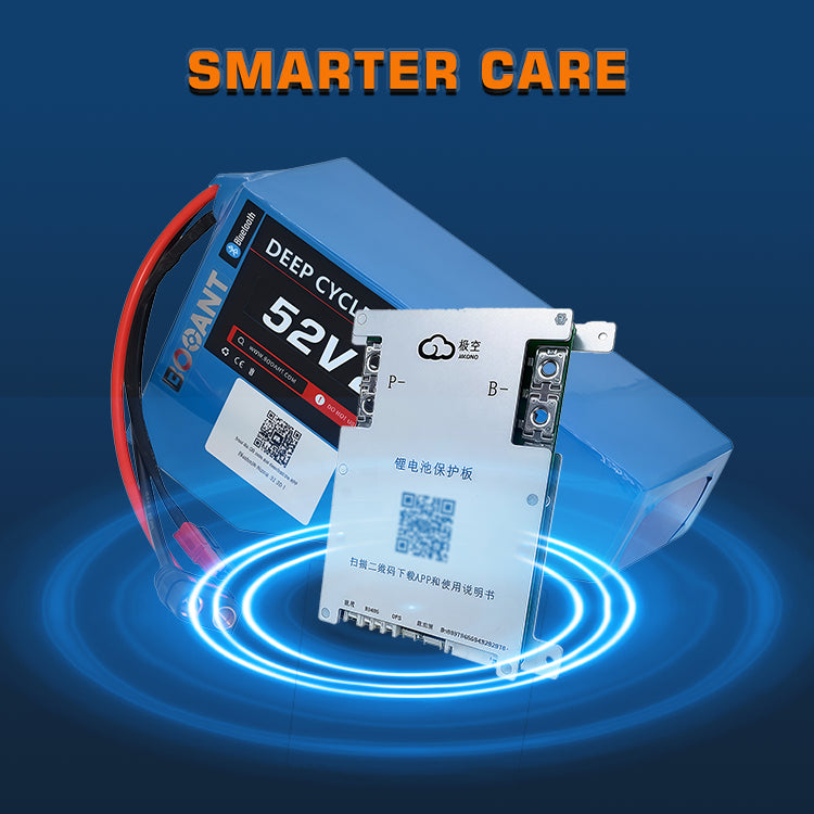 - Smart Bluetooth BMS with Real-Time APP Monitoring & Control : Unlock unparalleled control over your eBike battery. Our built-in Bluetooth BMS syncs with your smartphone, allowing you to monitor voltage, capacity, and health in real-time, and remotely control charging cycles for enhanced safety and convenience.